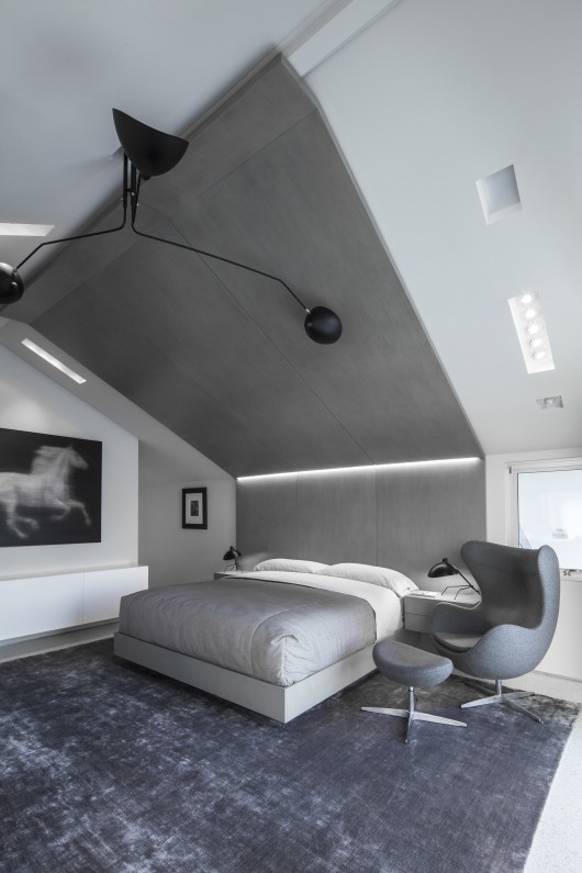 The minimal, gallery-like living space is designed to accommodate the client’s extensive collection of contemporary art. Display niches, lighting and the configuration of the spaces are designed to enhance the experience of viewing the art.