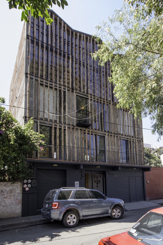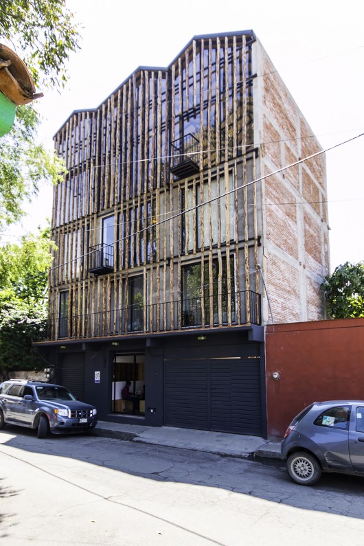 The great frame of the project, the “forest” curtain, captures the attention of passersby while protecting the interiors. Within the facade, two metal rails emerge breaking the andirons curtain and allowing contact with the outside and other stories.