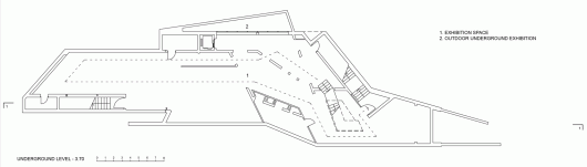 Finally the building has three entrances. There is a multifunctional hall and reception/information on the ground floor and an exposition hall underground. With restrooms and technical rooms the program is complete.
