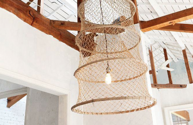 The elegant cousin of the lobster trap coffee table? Meet the fishing basket lamp. (And consider making your own).