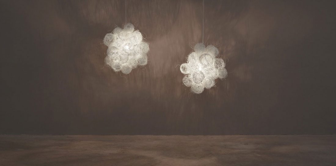 The Blum collection showcases lamps realized in delicate strands of painted stainless steel, metal fibers fashioned into ethereal, cottony white balls. Blum’s fibrous clusters converge to exude warm and subtle illumination through its delicate threads, a stark visual contrast to conventional notions of cold steel. In keeping with Arturo Álvarez’s approach to material investigation, nothing is what it appears to be. Available as modern pendant lamps or contemporary wall lights, Blum exerts its singular magic in any iteration.