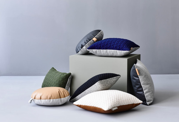 The minimalist cushions pair leathers and fabrics from Febrik and Kvadrat in a range of colors and textures. Each product is designed and made in Melbourne.