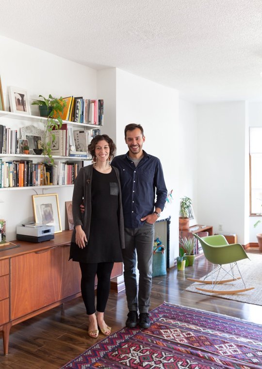 After meeting in Europe and living in the UK for a several years, Nuria and Ricardo decided to move to Canada. They first landed in Nuria’s hometown of Montreal and stayed just long enough to begin collecting furniture from local estate sales and markets. Many of their pieces were bought from a closing downtown convent, while the rest are mostly hand-me-downs or gifts from family. The couple love the clean lines of modern design but equally adore color and patterns. Nuria is especially drawn to textiles from places such as South America, Morocco, and Portugal—where Ricardo is from.