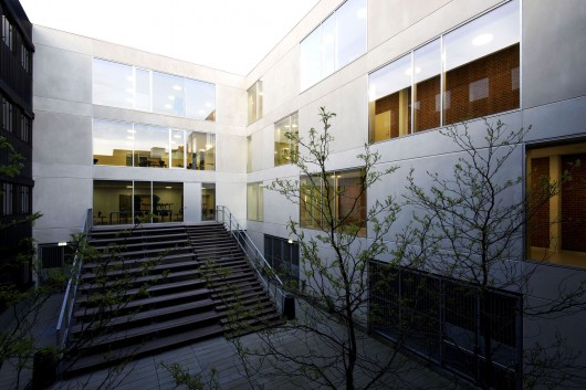 The large classrooms are situated with views towards the city, the theatre and the park and shapes a new courtyard, which as a terraced inner stage offers a new public venue both out and in.