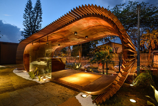 From the architect. This small pavilion functions as a doorway to the design and architecture exhibition ‘Casa Cor MG 2015′ in Belo Horizonte, where ‘Brazilianity’ was the proposed theme.