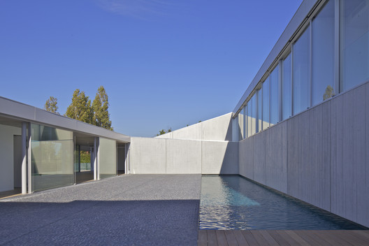 An unassuming building, whose sobriety can not pass for austerity given its generous dimensions, materials, textures, light and views, this house yet reveals a high level of exigency and a great deal of precision. Two qualities that, however, do not make it a rigid, frozen or defined project. The goal of the architects was not to be minimal or overly aesthetic, even though the resulting image is ambiguous due to the absence of signs and to functions’ evanescence. The project displays a fluid spatiality evidenced by discrete openings and circulations routes, a concealed staircase, and windows that seem to fade to embrace the landscape better.