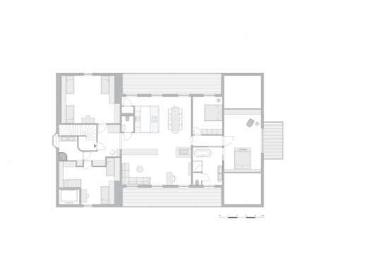 One of this project’s central challenges was to highlight the big and up to six metres high main room in its entirety while creating a cosy and comfortable atmosphere at the same time.