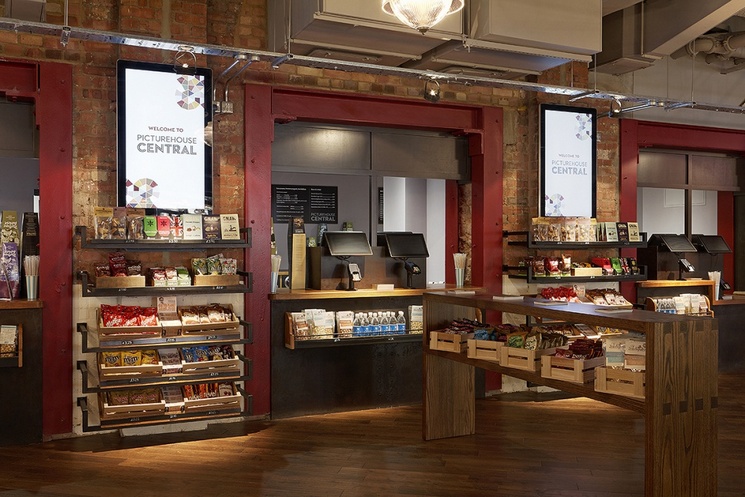 Picturehouse Central’s ground floor includes a New York deli-style cafe and a grand staircase leading up to the first floor, where a cafe bar overlooks Shaftesbury Avenue.
