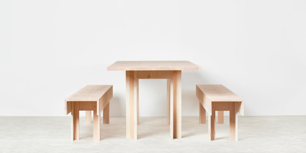 The collection will include a dining table, bench, lounge table, console, and shelving (with or without storage).