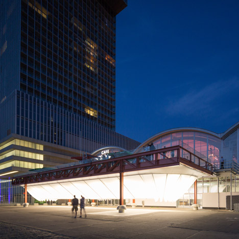 Curtain-like walls can be drawn up to the ceiling of this luggage-sorting space in Rotterdam‘s port, minimising its impact on the 1940s cruise terminal building behind (+ movie). (more…)