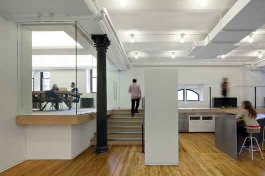 From the architect. Purpose is a creative strategy consulting agency largely focused on organizing mass online movements. They took a floor in the mansard roof storage space of the old Arnold Constable Department Store (now defunct) on 5th avenue.