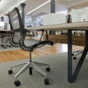The platforms and ramp connect at the open pantry with tiered levels for presentations and events. Custom desks are economically made from sheets of plywood, rubber and 4×4 posts.