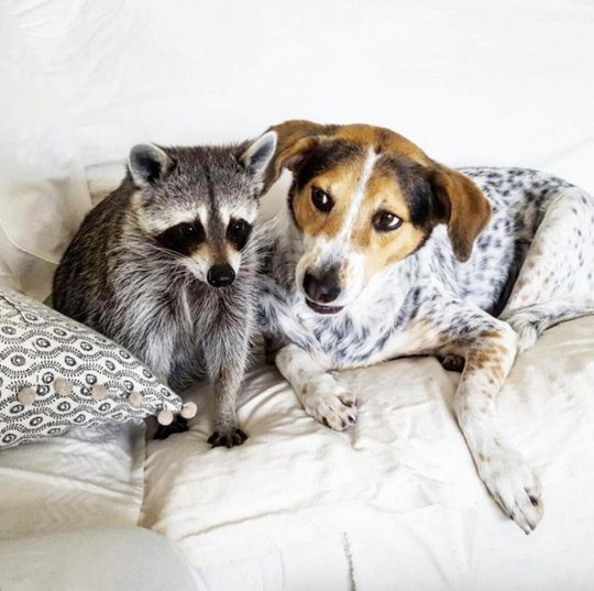 Grumpy Cat is cute and all, but she’s got nothing on this raccoon-dog interspecies cuddle sesh. Let me introduce you to Pumpkin, a rescue raccoon who, along with her puppy pals Oreo and Toffee, is Instagram famous for, well… being a really freakin’ cute pet.