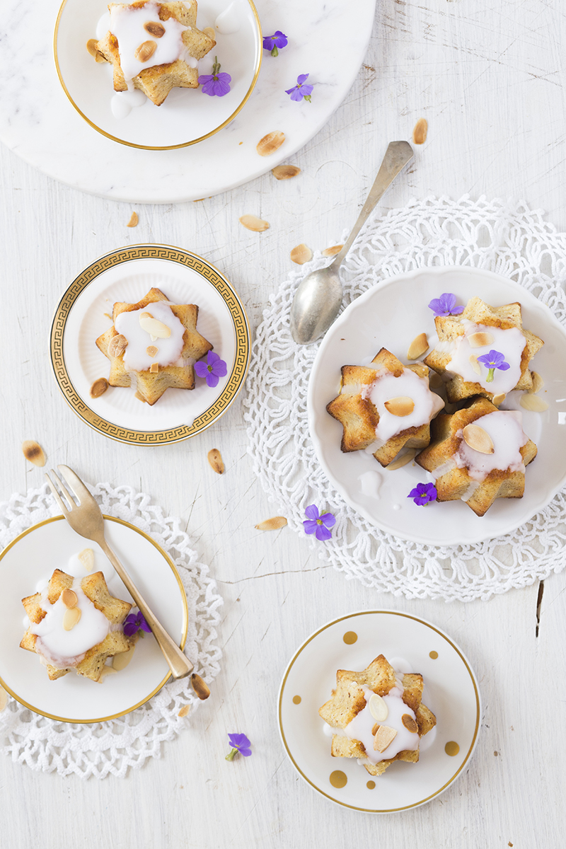 Hi, it’s Liz and I’m presenting a recipe for delicious Almond Yogurt Cakes today. I made these mini cakes for a Sunday afternoon coffee and cake gathering. Here in Germany we call these kind of get-togethers “Kaffeeklatsch”. The sun was out, it was warm and I opened the doors to my terrace. The kids ran in and out and the border between inside and out slowly faded. Aaah. What a lovely afternoon!
