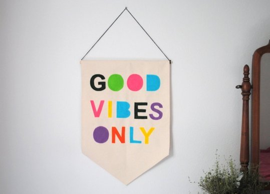 Graphic wall banners are gaining popularity, and for good reason. They’re a great alternative to framed art for adorning your walls that allow you to say, well, anything. We’ve rounded up a few of our favorites ranging from cute to cheeky.