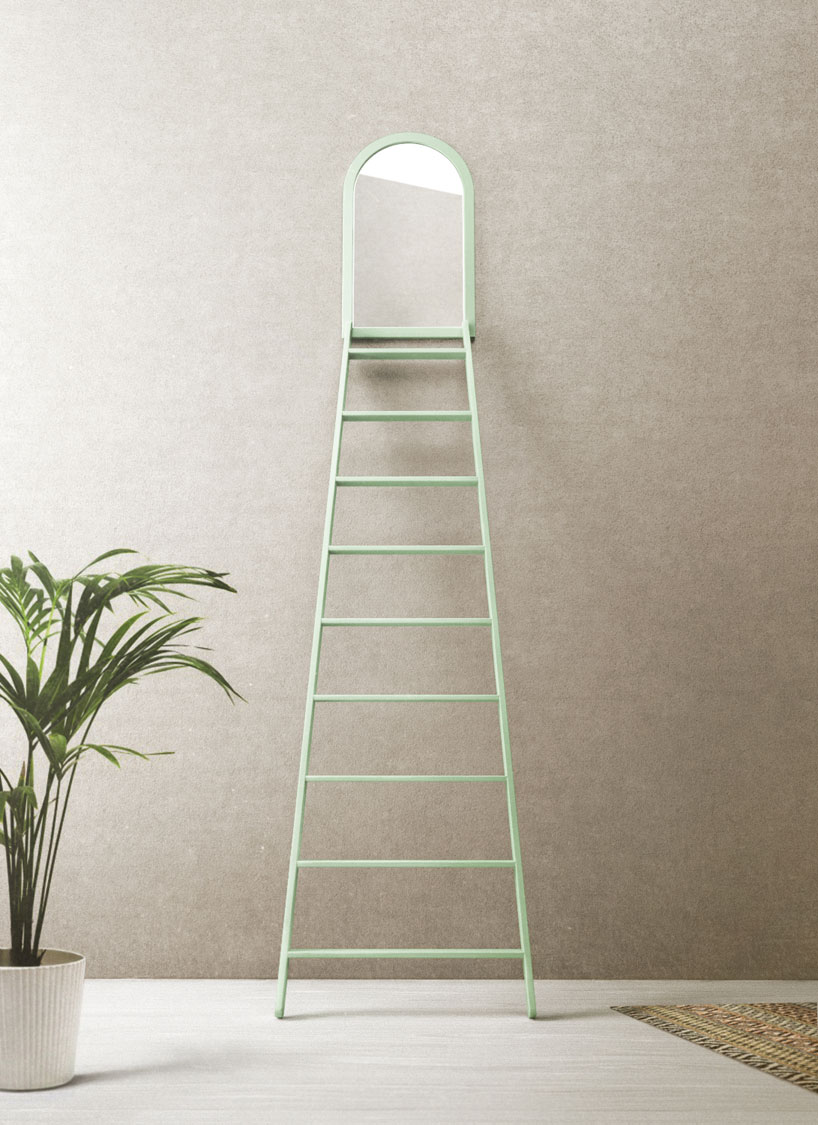 ‘narcisco’ features a nine-step ladder that leads people out of the darkness and into their own shining faces via an inconveniently placed mirror at the top.