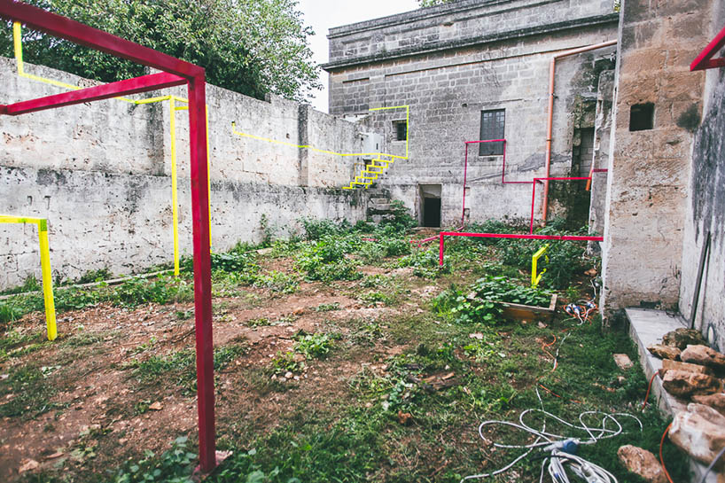 the studio’s (re)creation of a decrepit space through use of colored lines of paint–and structures–creates an emotional experience that questions what was, what is, and what could be.