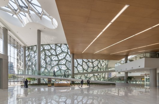 From the architect. The much anticipated Shanghai Natural History Museum, designed by Perkins+Will‘s Global Design Director Ralph Johnson, has opened in Shanghai. The 44,517 square meter (479,180 square foot) museum offers visitors the opportunity to explore the natural world through the display of more than 10,000 artifacts from all seven continents. The building includes exhibit spaces, a 4D theater, an outdoor exhibit garden, and a 30-meter tall atrium that welcomes visitors with an abundance of natural light filtered through a striking glass wall inspired by the cellular structure of plants and animals.