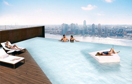 Construction is underway on SHoP Architects‘ newest addition to the New York skyline – 626 First Avenue. The conjoined residential towers, slated for completion in early 2016, aims to stimulate development on the city’s East River. Once complete, they will add 800 residential units to the area connected via a sky bridge. Featured amenities will include an indoor lap pool, communal lounge areas, rooftop deck, fitness center, and film screening room. In addition to the cooper structures, SHoP will also design all the buildings’ interiors and furniture, making the development a true gesamtkunstwerk.