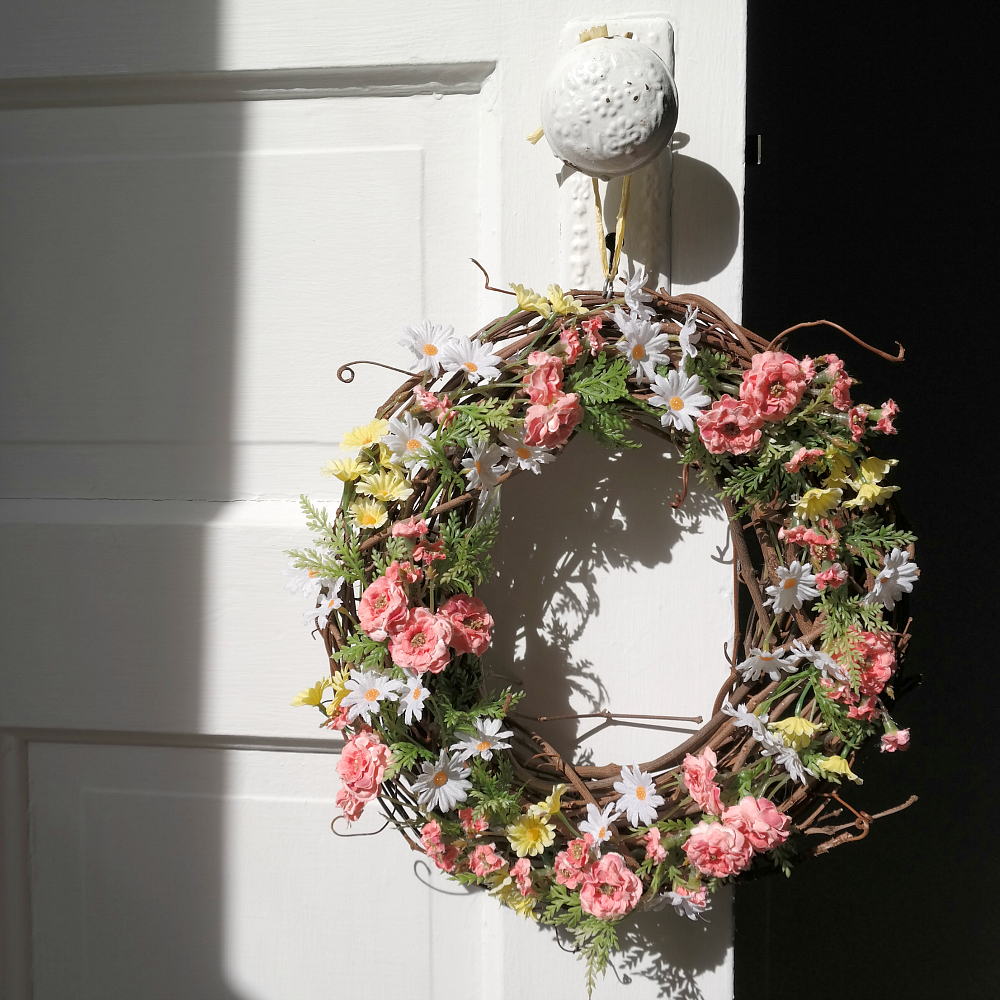 There’s just something about a little floral wreath that is the epitome of spring. You can leave a delicate flower-laden circlet on your wall or door from April through May… or August if you’re a flower lover like me.
