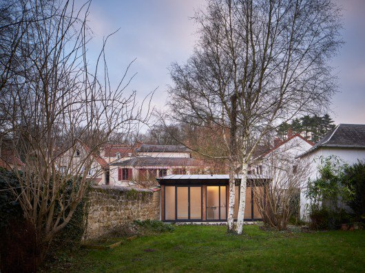 Today, the plot L configuration disconnects the garden from the house: so the construction of the ” atelier » answers to the necessity to create a place open to the garden in order to take advantage of it. Moreover, the family wishes to add some square meters to their house, thus they would like not only to create a place to work close to the garden, but also a place where they could invite some friends to sleep over.