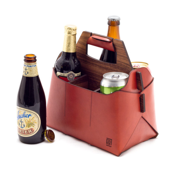 Their designs are based on a patent-pending, fold and notch system that lets them simplify production by shipping the product flat and letting users assemble the carrier at home in six folds. Made of leather and walnut, the beer carriers are available in a four pack or six pack design.