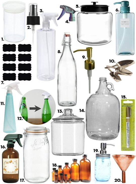 When I wrote about 16 Oh-So-Pretty Cleaning Supplies, a commenter after my own heart asked, “Does anyone have an idea of gorgeous spray bottles to use for homemade counter cleaners? That would really brighten up chore time for me, instead of using the same old battered plastic bottle I’ve been using for years…” I’m on it!