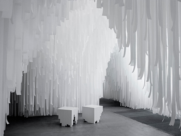 Snarkitecture is quite known for their scaled-back aesthetic where they remove all non-essential details, much like COS’ design sensibilities, so the collaboration was a perfect match. Without using any of the brand’s garments, Snarkitecture still managed to capture COS’ unique simplicity through the use of white strips of fabric in varying lengths to create an undulating, cavernous installation.
