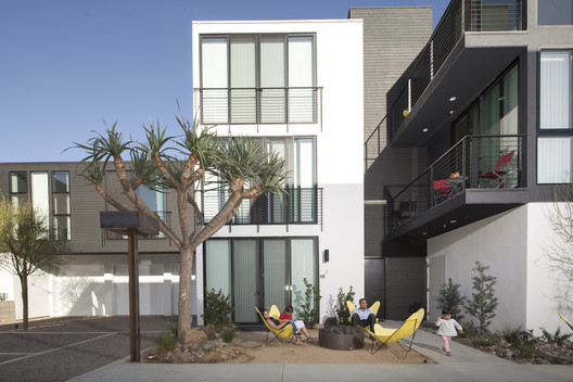 From the architect. Sofia Lofts introduces historic Golden Hill to a sharply contemporary, distinctively community-oriented approach to urban living. Appealing Mid-Century Modern design and forward-looking sustainability features (including on-site electric vehicle chargers and an innovative bike-sharing program) create an environment to foster inter-generational living and a diverse demographic. Coming from a culture rooted in the nurturing of multi-generational relationships, the Nakhshab team was influenced by this value when designing the spaces that would increase interaction between residents.