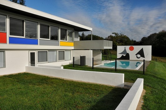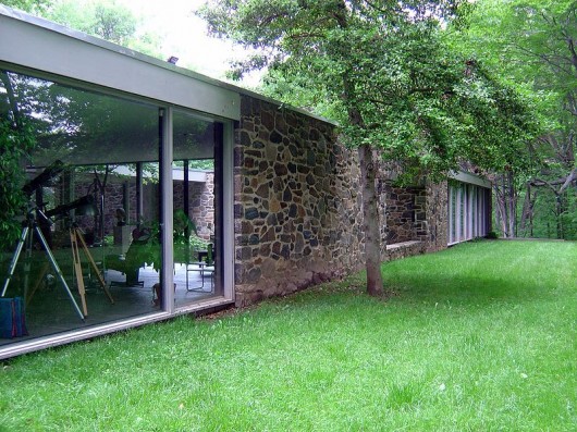 Breuer’s focus on furniture during his Bauhaus years translated well into understanding homes, and he brought a similar, semi-structuralist approach to exposing elements used in construction and defining living areas. While Richard Neutra was at the same time working to develop the airy geometry of the modernist West Coast home, Breuer combined his glass with stone and natural materials, anchoring his designs in prosperous post-war East Coast culture. These ideas reached a height with his ”bi-nuclear” archetype of separate night and day wings divided by an entrance hall, all underneath a centrally drained “butterfly” roof.