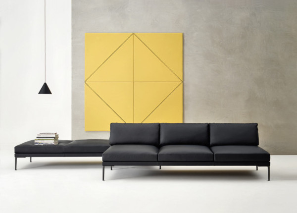 The slim profile is solid and comes with a seamless back and arm covers that are stretched to fit its frame, which eliminates complex upholstery techniques. The result is a clean, architectural silhouette that keeps the details to a minimum.