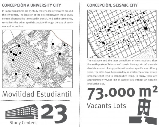 It is envisioned that the project will accommodate members of the high student population of Concepción, and the ”temporary user… who generates little roots and is able to live in small spaces.” The proposal relies upon the capacity of both its site and residents for adaptation, and targets those “who [bring their] life in a suitcase.”