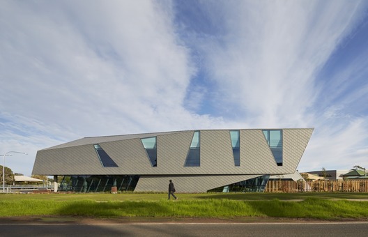 The surrounding landscape of Werribee was a major influence in defining the architectural form and profile of the building. The rich tonal landscape of the Werribee farmlands, the rocks and cliffs of the Werribee Gorge, the long snaking Werribee River (in the local Aboriginal language, ‘wirribi’ means spine or backbone), and the paintings of these by Australian artist Fred Williams, were all important visual and tonal cues for the architecture and landscape.