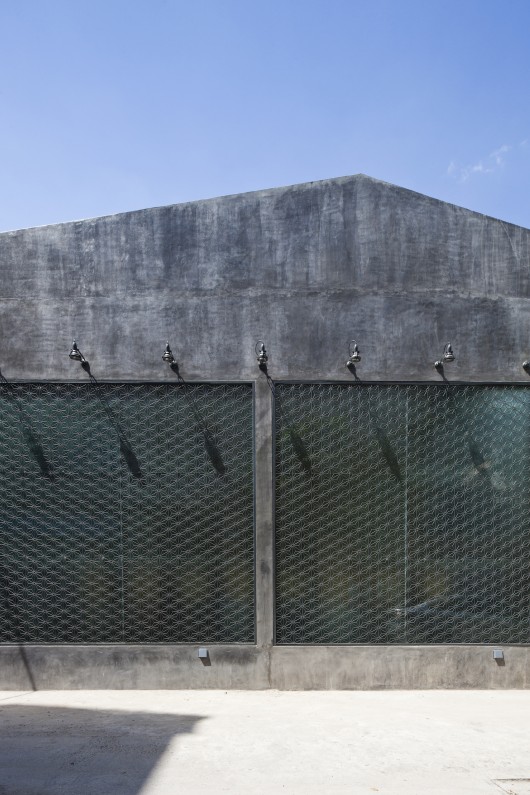 The suspended louver above the pond center, to keep the view for the pond both from the main-Bldg. and the annex, at the same time to block the sight from each other.