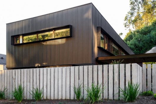 From the architect. The project is located on a site located at the bottom of a narrow valley surrounded by hills; in the northeastern end of the Schaub de Chiguayante subdivision; a territory with short periods of sun exposure, so the conceptual idea of the project was to try to gain height to improve the sun exposure in all rooms.
