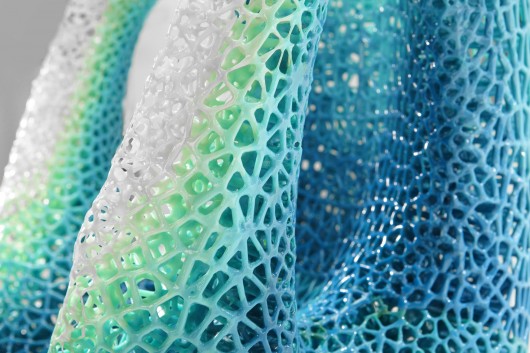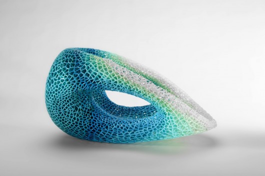 “The complexity and density of the three-dimensional mesh of the Durotaxis Chair would be ridiculously laborious in any other conventional manufacturing process,” explain Synthesis Design + Architecture, “however the gradient distribution of material properties and performance would be impossible without the Objet Connex3.”