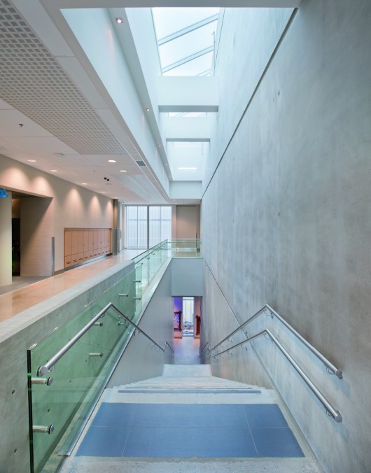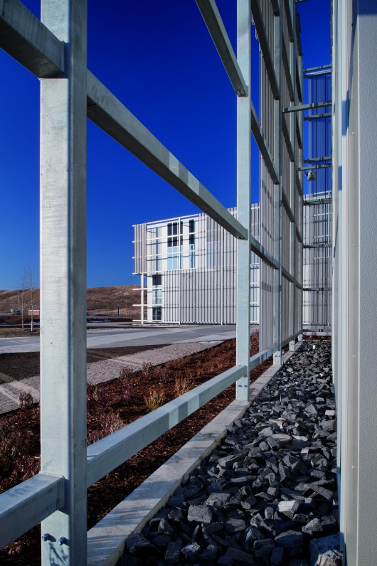Porous paving, bio-swales, on-site water retention/reuse and wetland areas are integrated with a high performance building envelope that uses solar shading, natural light and has a solar ready roof. Rather than a typical, forced-air ventilation and cooling system, the building incorporates displacement ventilation and radiant panels to distribute fresh air and highly effective heating and cooling for visitor comfort.