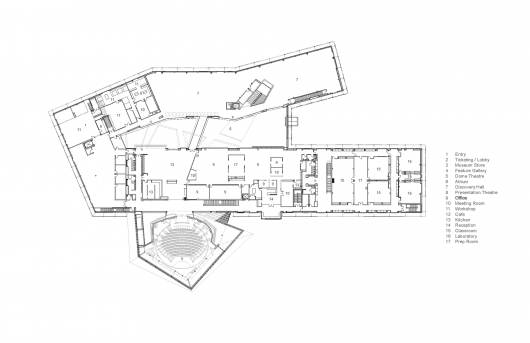 From the architect. One of the most challenging aspects of this 13,500 sq m project was to provide a facility that is memorable, youthfully exuberant and dynamic, both from a distance and up-close, within a limited budget. To this end, the building was conceived as an exhibit platform where the usual boundaries of inside and outside are blurred and the building itself takes on new, colourful forms as exhibits come and go.
