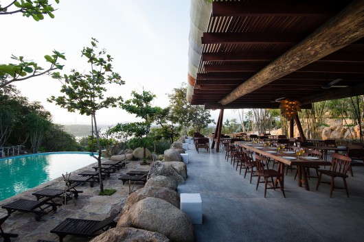 From the architect. “The Cloud” is a small restaurant with a capacity of 60 guests, located on the top of the hill in I-resort, Nhatrang, Vietnam.