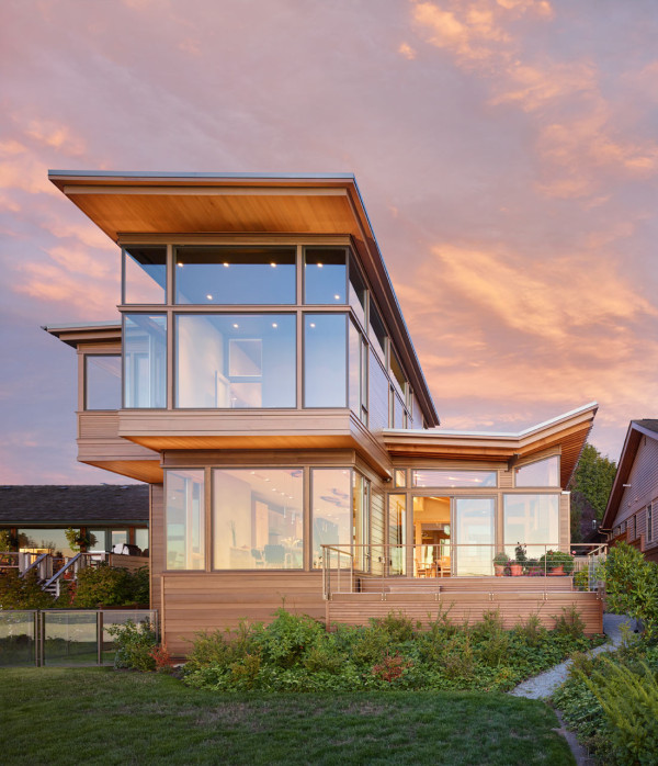 Located on a narrow plot of land facing Seattle’s Puget Sound, the Elliott Bay House offers breathtaking views of both the sound and the Olympic Mountains. Designed by FINNE Architects, the “crafted modernism” residence features a dramatic roof line as it reaches out towards the water views.