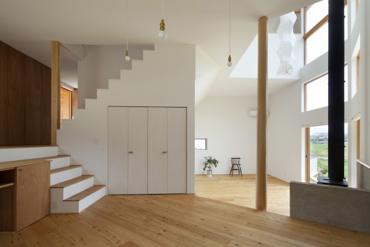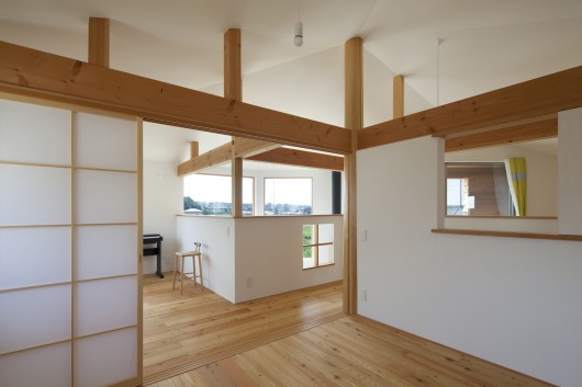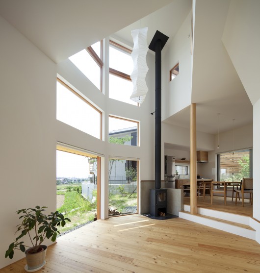 The feel of this interior arrangement allowed the residents to richly experience the transition from urban to rural in the outside scenery from within their own home.