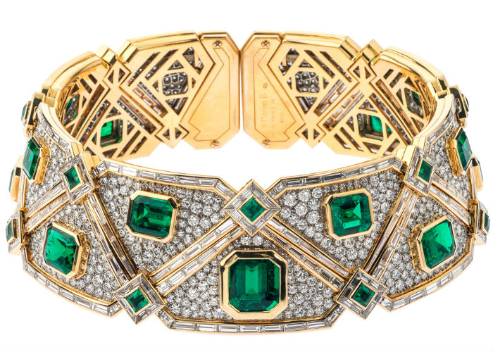 Collars are making a resurgence this year, and this one-of-a-kind masterpiece is one of the most opulent pieces we’ve ever seen. Designed around 1991 by Marina B (that’s Marina Bulgari, granddaughter to company founder Sottiro Bulgari), the Selma necklace is outfitted in over 120 carats of diamonds and emeralds of varying calibers. Set in 18 karat white and yellow gold, this necklace boasts 62.02 carats of emeralds and 61 carats of pavé-set baguette diamonds. Available at Crest and Co. and priced at $3.5 million.