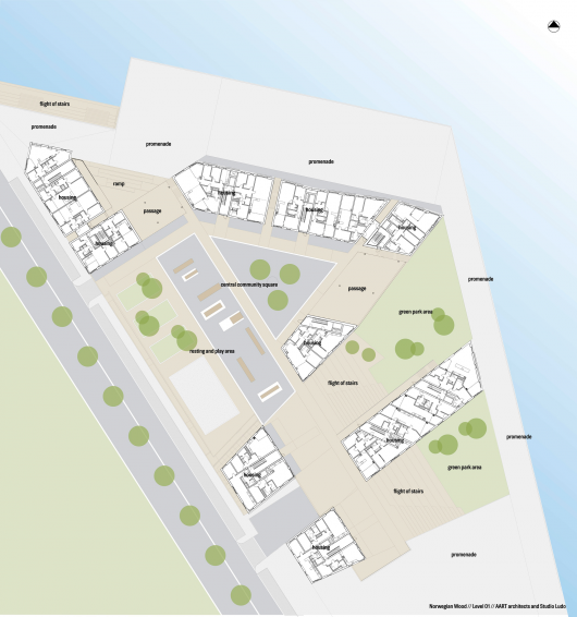 From the architect. Designed as one of the largest wooden residential developments in Europe, the Waterfront (in Norwegian ‘Vannkanten’) positions Stavanger as a pioneer city in the field of modern wooden architecture. Stavanger has the highest concentration of wooden architecture in Northern Europe, and the vision behind the Waterfront is thus to create an iconic and vibrant development, expressing a local identity and a global vision.