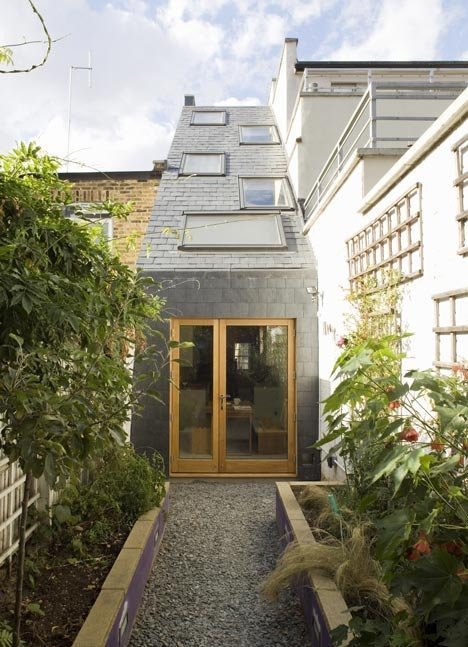 This little London house, situated in what used to be an alley, is only 7.5 feet wide. So the architects tasked with designing an extension to the home faced a unique challenge — how to bring natural light into a long, narrow building with only a little space for windows on either side.