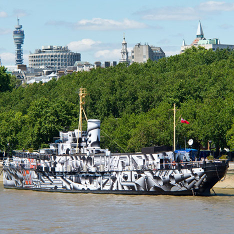Tobias Rehberger covers HMS President in “dazzle camouflage” July 16, 2014 Editor Architecture By Dan Howarth Via: Dezeen