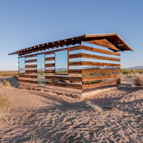 Mirrored panels can be used to create architectural illusions and disguise buildings in their surroundings, like this desert shack that looks as if it’s see through.
