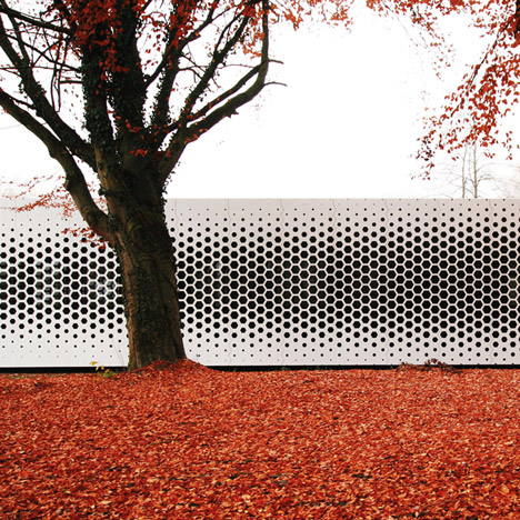 Cladding a building with perforated metal is an easy way for architects to enliven the facade of an otherwise simple structure, like this honeycomb-patterned office in Germany.