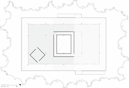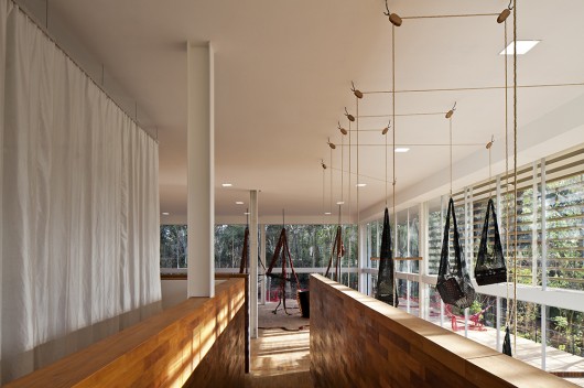 The natural uphill terrain was respected, and the building was suspended slightly. This is differentiated from the topographic level generated by the two main levels, connected by stairs and ramps that go beyond the interior sphere and creating a large open balcony.
