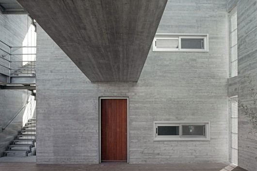 The choice of materials was based on a preference for minimum maintenance requirements: building volumes of exposed concrete, wood flooring, while elements such as the main staircase and the first-floor verandahs are galvanized steel constructions.