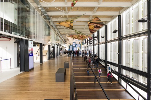 Unlike most pavilions historically, and recent US Pavilions in particular, American Food 2.0 is an invitation to enter a visible and transparent open public forum. The pavilion is characterized by openness, transparency, and accessibility. It is composed of sustainable design elements and with myriad references to American culture. Rather than a forced march through a fixed exhibition (as in the last Expo) the pavilion has a variety of experiences; a self-guided and flexible space, as well as a traditional linear exhibition. The building is a ‘farm industrial’ inspired structure embracing both simple, industrial agricultural architecture and advanced technology in a very American amalgam of opposites.